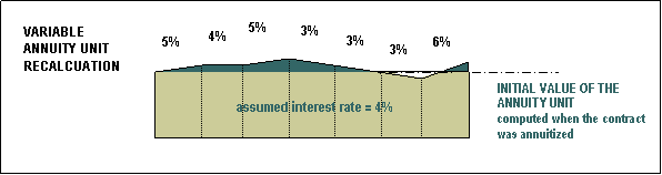To accommodate the variable concept, a new means of accounting for both annuity payments and annuity income was required. The result is the accumulation unit, which pertains to the accumulation period, and the annuity unit, which pertains to the income payout period.